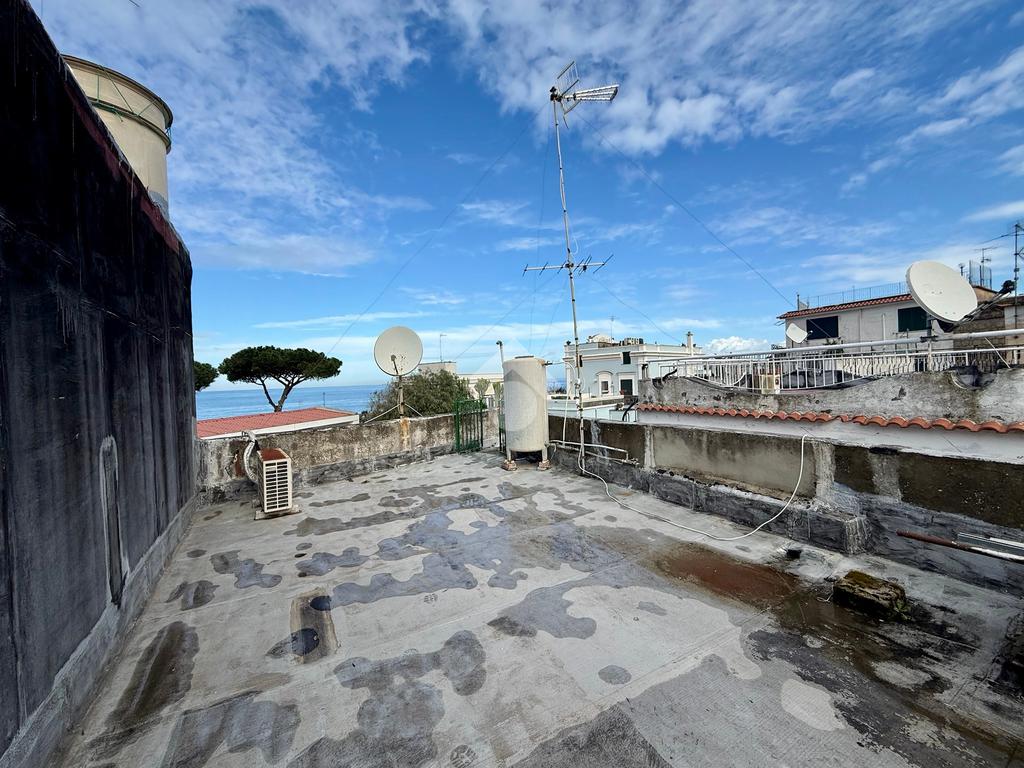 Sempre dalla scala esterna, la stessa che consente l'accesso all'abitazione, si raggiunge il terrazzo di copertura, dal quale si può godere di una piacevole vista mare.