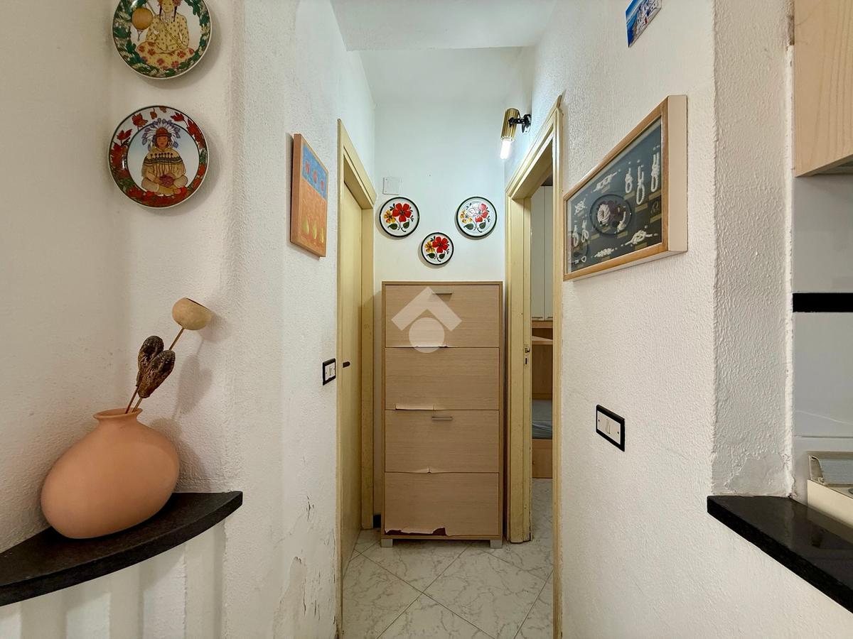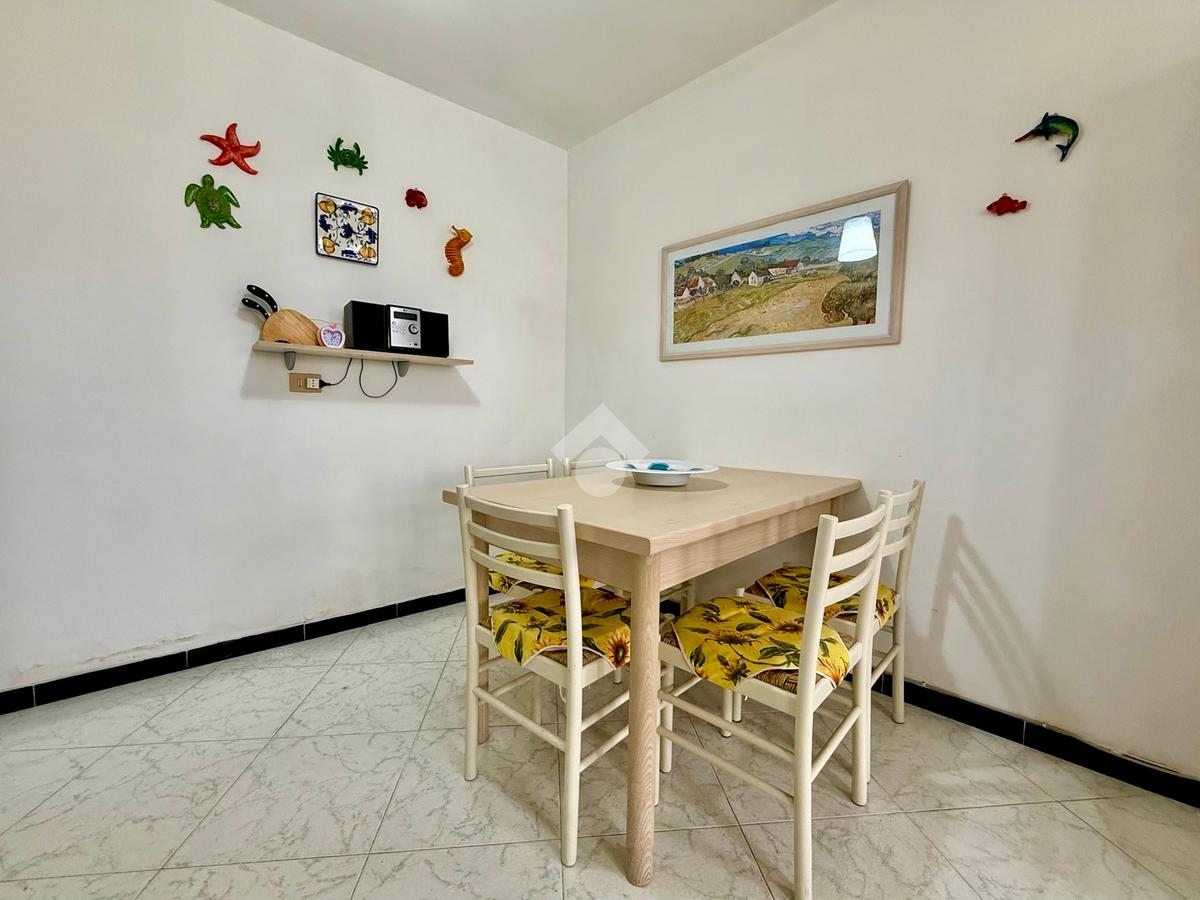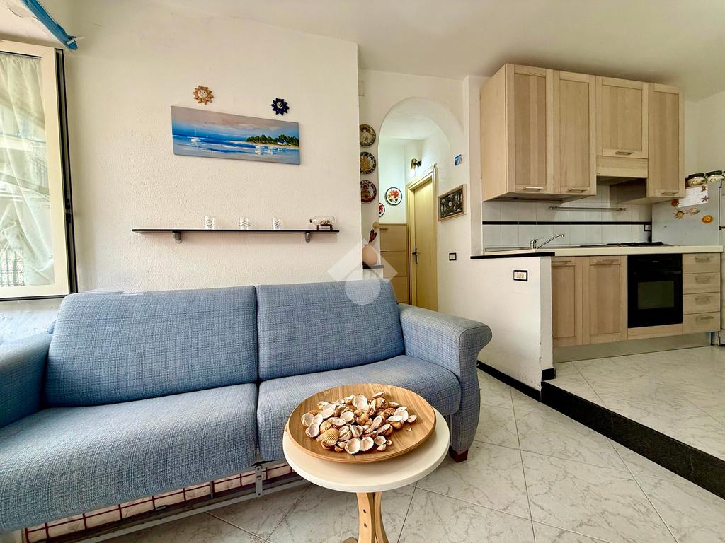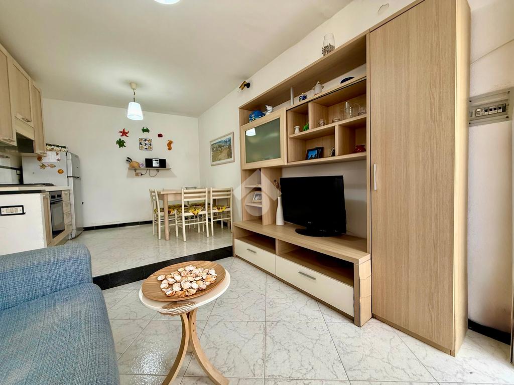 Entrando troviamo un accogliente soggiorno con cucina a vista, arredato con divano e tavolo da pranzo; proseguendo, un disimpegno conduce al bagno con doccia e alla camera da letto.