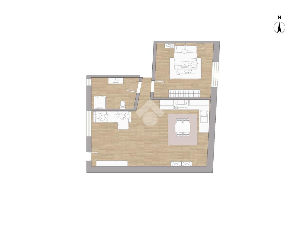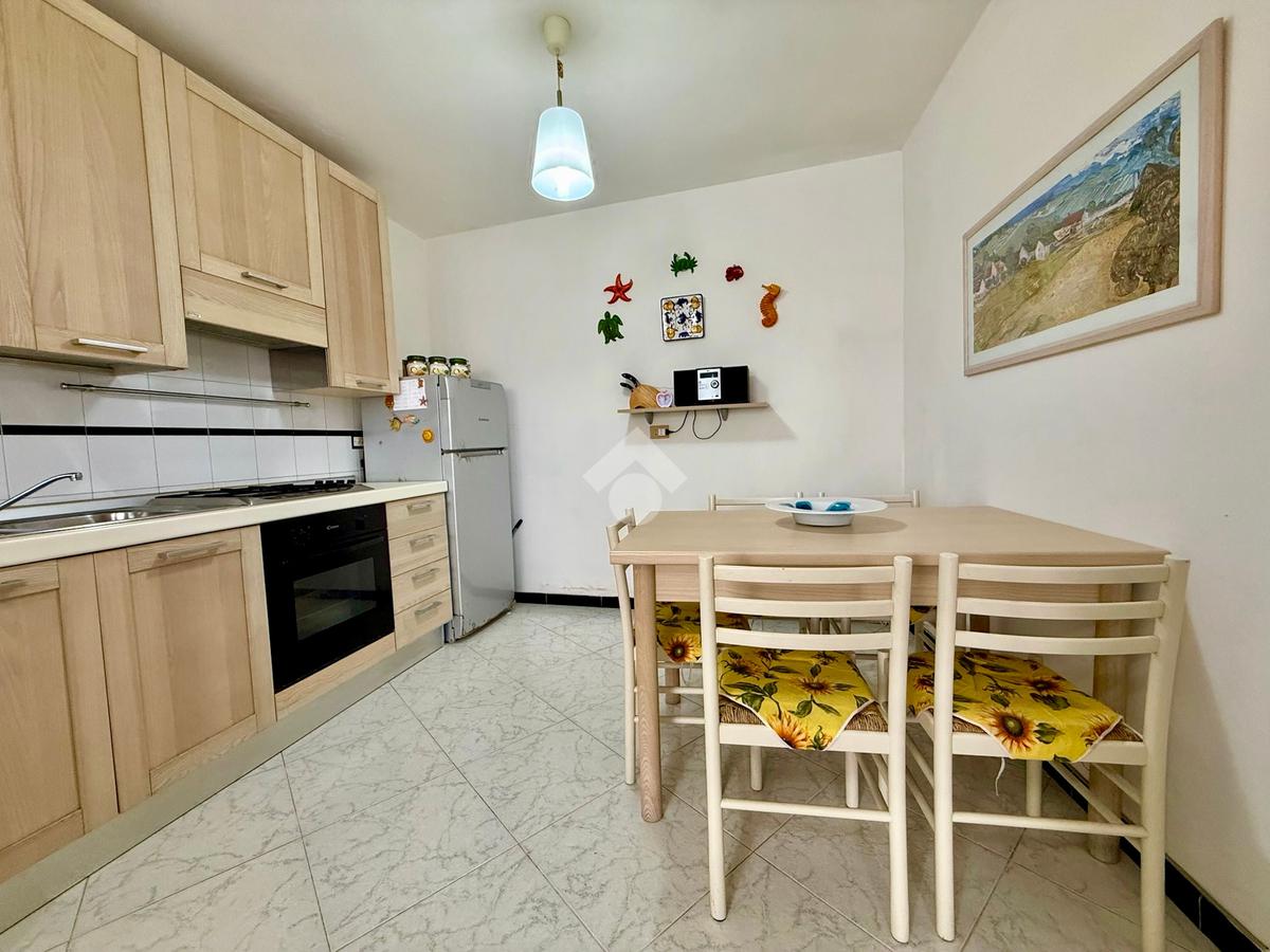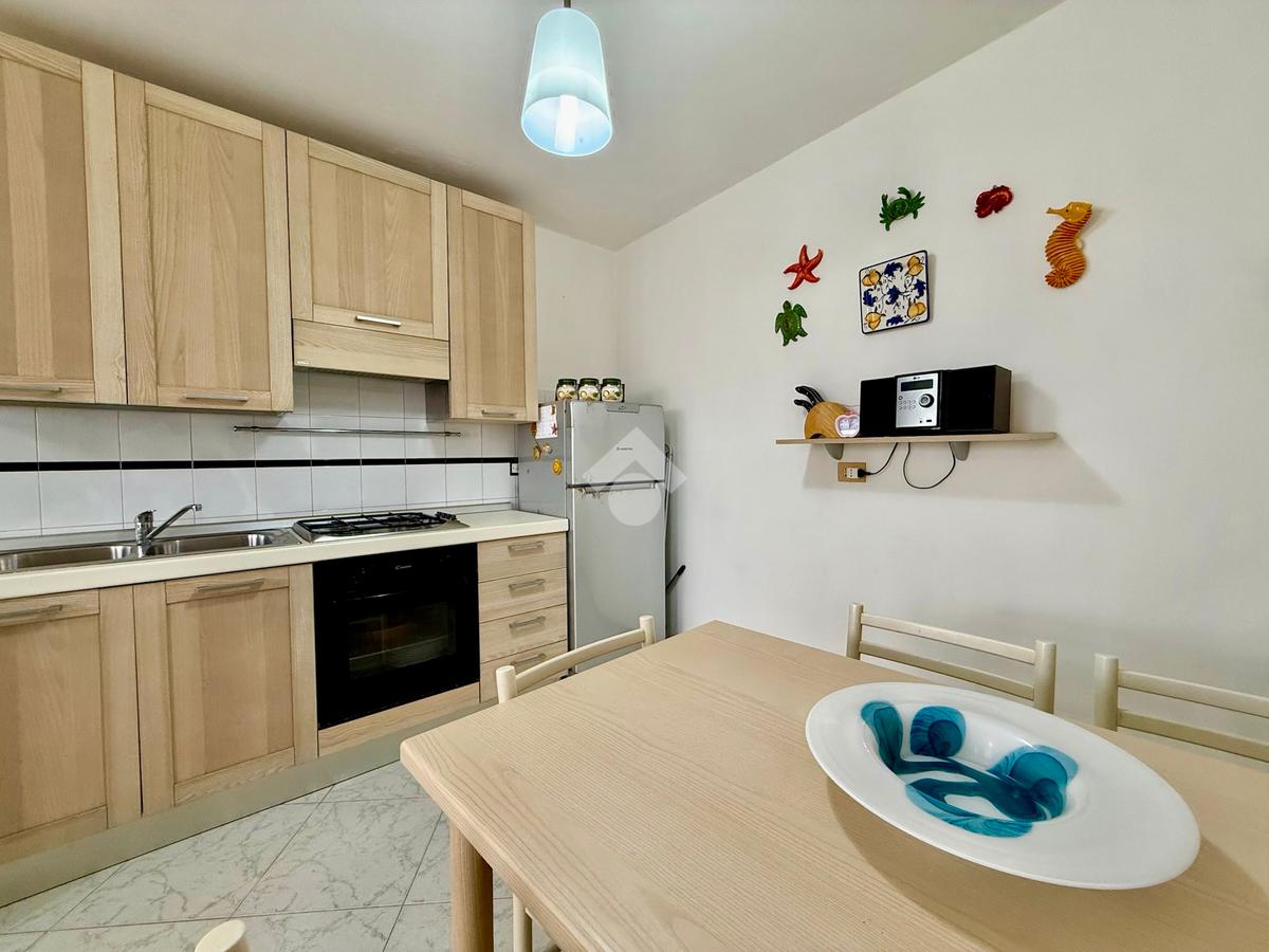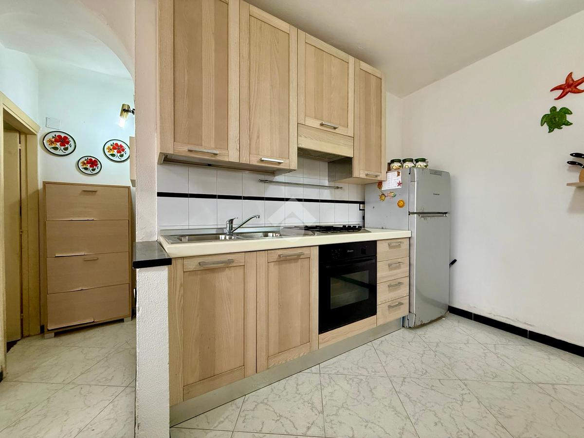 Entrando troviamo un accogliente soggiorno con cucina a vista, arredato con divano e tavolo da pranzo; proseguendo, un disimpegno conduce al bagno con doccia e alla camera da letto.