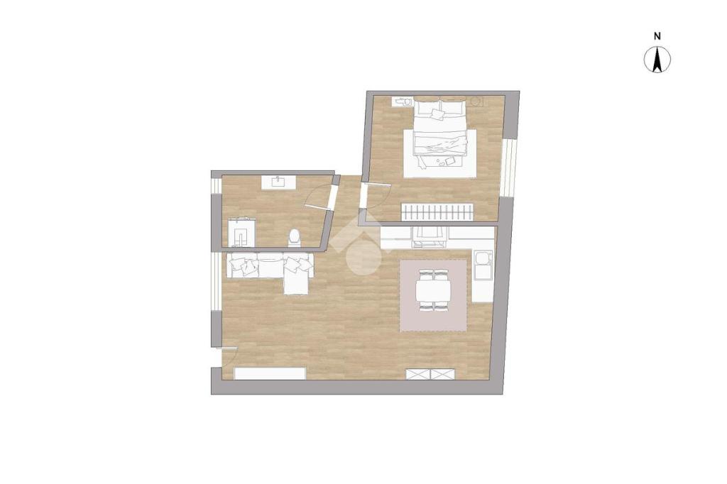La soluzione si trova all’interno di una piccola palazzina e si raggiunge attraverso una corte esterna comune, che accompagna all’ingresso dell’abitazione.
