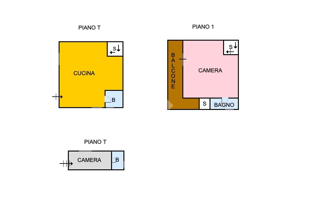 Una scala conduce al primo piano, dove si trova la camera da letto principale con bagno privato e balconcino.