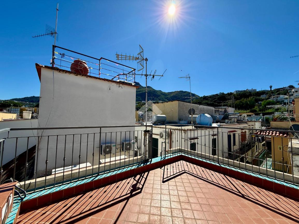 Nel cuore di Lacco Ameno, in una tranquilla traversa del corso principale, sorge questo splendido appartamento che racchiude tutto il fascino e la comodità della vita isolana.