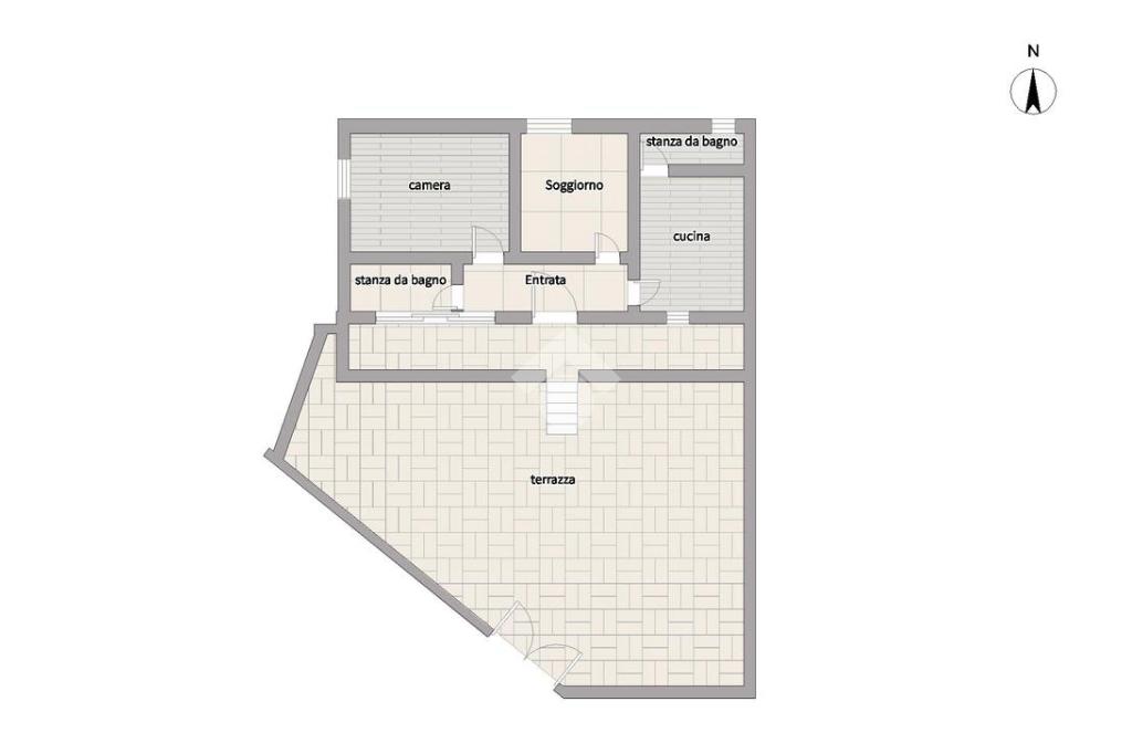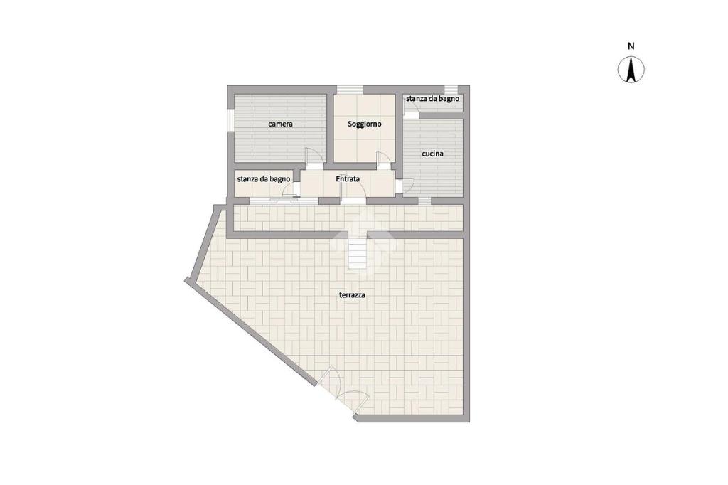 La disposizione interna prevede un corridoio centrale che disimpegna gli ambienti: camera da letto; una spaziosa cucina abitabile (sulla destra) che, con una moderna rivisitazione, può trasformarsi in un ampio soggiorno living con angolo cottura e un pratico bagno di servizio; alla sinistra del corridoio invece troviamo un bagno padronale con doccia.